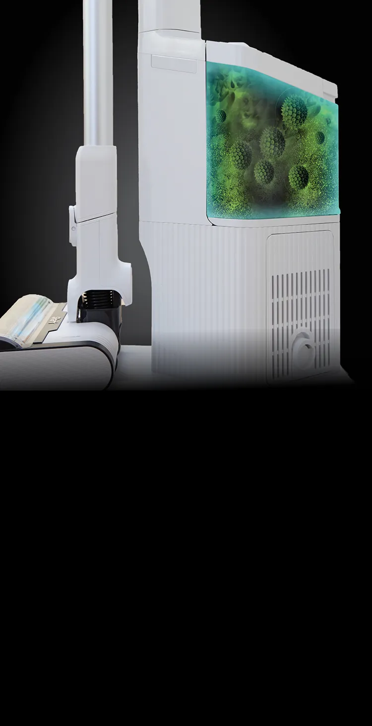 Automatic scrubbing mop head with rotating pads deliver an effortless glide and a smooth cleaning experience—the pads do all the work.
