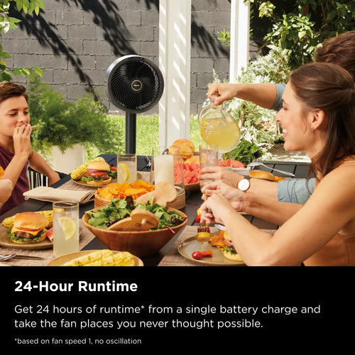 Get 24 hours of runtime* from a single battery charge and take the fan places you never thought possible. Run out of battery? Just plug it in and keep the power going while recharging. *Based on fan speed 1, No oscillation
